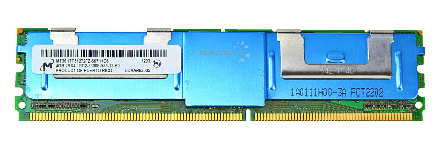 • Set of 4GB memory consisting of 1x 4GB PC2-5300 DDR2 667MHz 1.8 V ECC FULLY BUFFERED DIMM | MT36HTF51272FZ-667