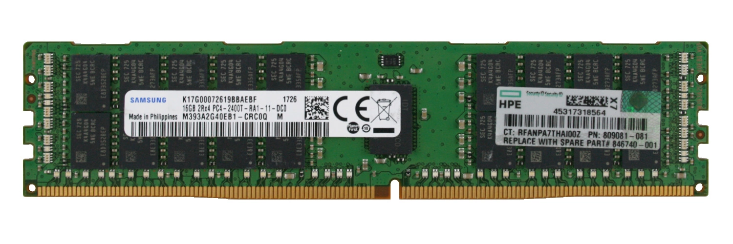 • Set of 16GB memory consisting of 1x 16GB 2Rx4 PC4-19200 DDR4 2400MHz 1.2 V ECC REGISTERED | M393A2G40EB1-CRC
