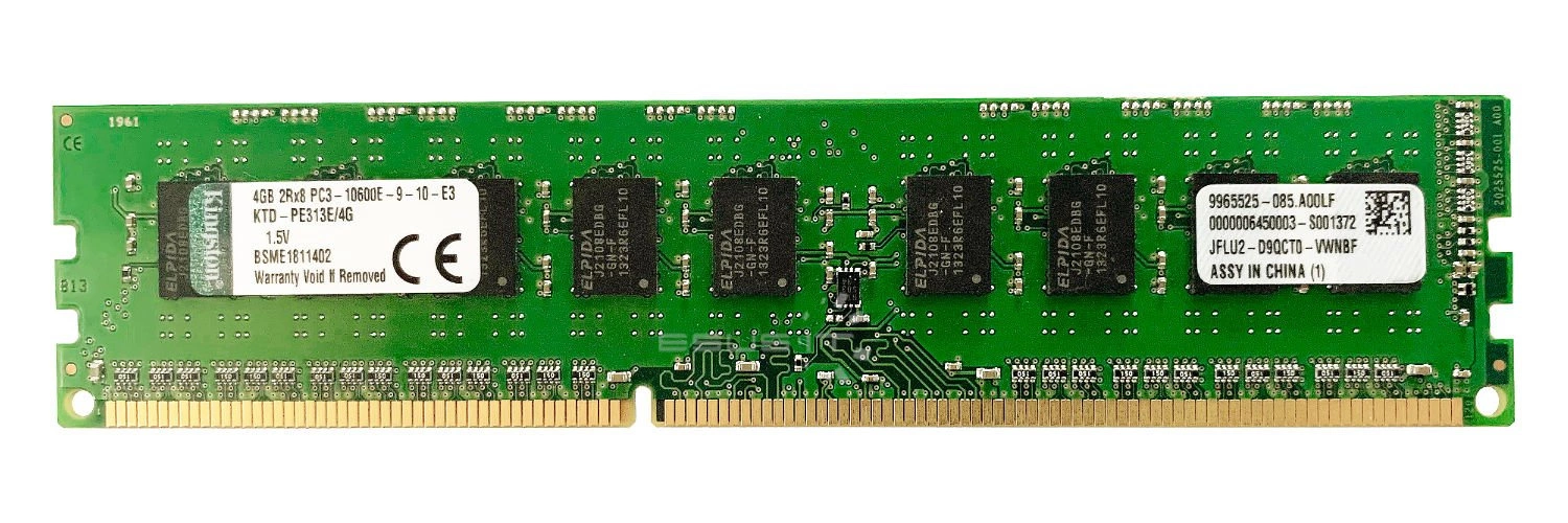 - Set of 4GB memory consisting of 1x 4GB PC3-10600 DDR3 1333MHz 1.5 V ECC UNBUFFERED | KTD-PE313E/4G