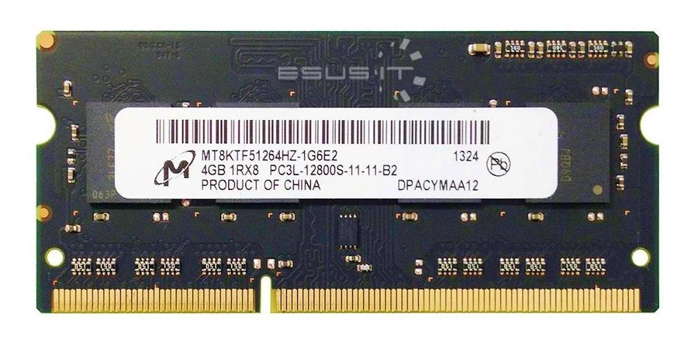 - Set of 4 GB memory consisting of 1x 4GB SO-DIMM DDR3 1600MHz PC3-12800 | MT8KTF51264HZ-1G6