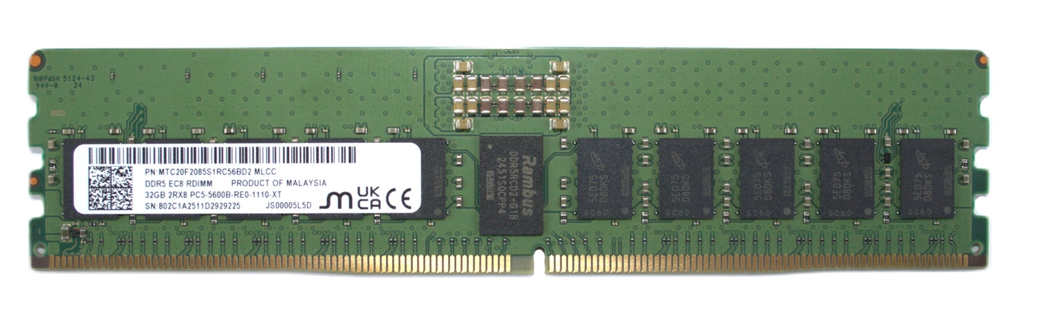 • Set of 32GB memory consisting of 1x 32GB 2Rx8 PC5-44800 DDR5 5600MHz 1.1V ECC REGISTERED | MTC20F2085S1RC56BD2