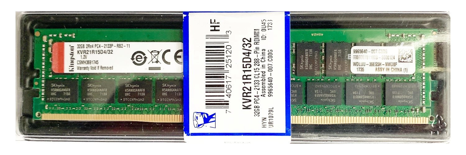- Set of 32GB memory consisting of 1x 32GB PC4-17000 DDR4 2133MHz 1.2 V ECC REGISTERED | KVR21R15D4/32
