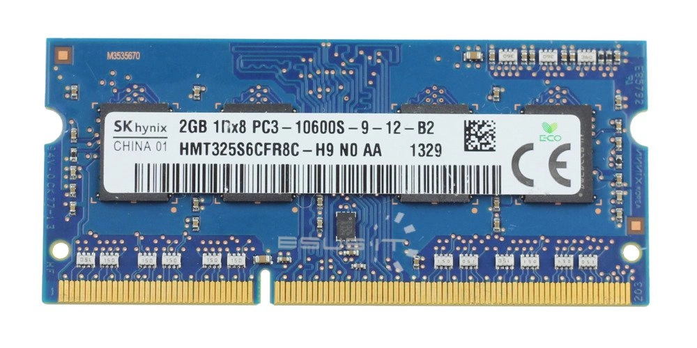 • Set of 2 GB memory consisting of 1x 2GB SO-DIMM DDR3 1333MHz PC3-10600 | HMT325S6CFR8C-H9