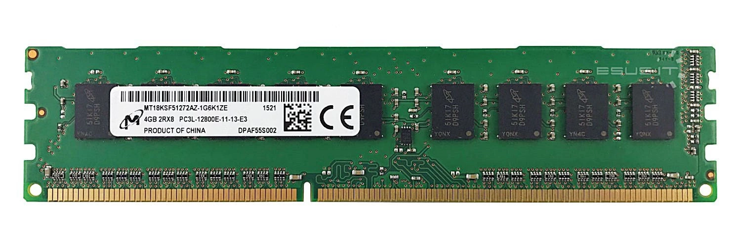 - Set of 4GB memory consisting of 1x 4GB PC3-12800 DDR3 1600MHz 1.35 V / 1.5V ECC UNBUFFERED | MT18KSF51272AZ-1G6