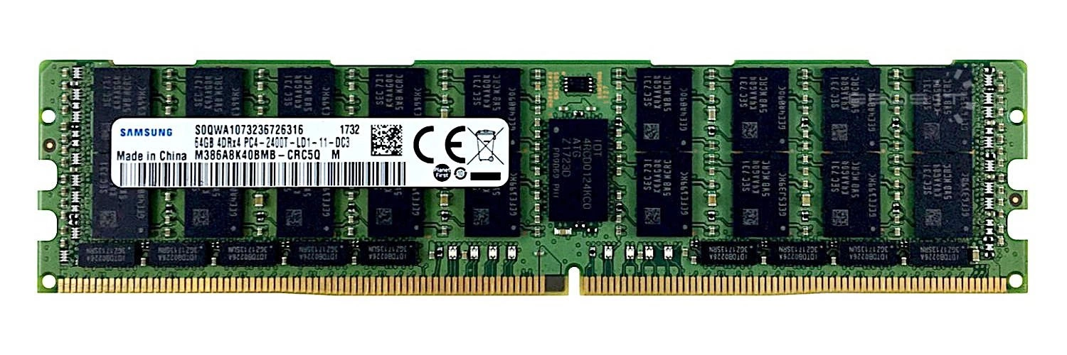 - Set of 64GB memory consisting of 1x 64GB PC4-19200 DDR4 2400MHz 1.2 V ECC LOAD REDUCED DIMM | M386A8K40BMB-CRC