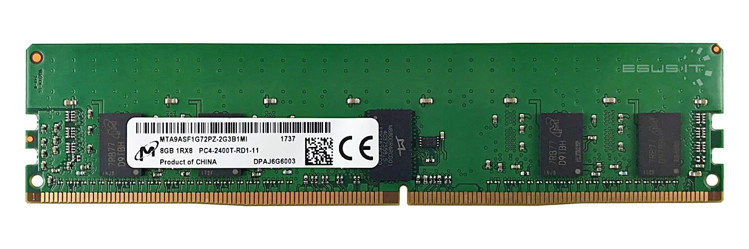 • Set of 8GB memory consisting of 1x 8GB 1Rx8 PC4-19200 DDR4 2400MHz 1.2 V ECC REGISTERED | MTA9ASF1G72PZ-2G3