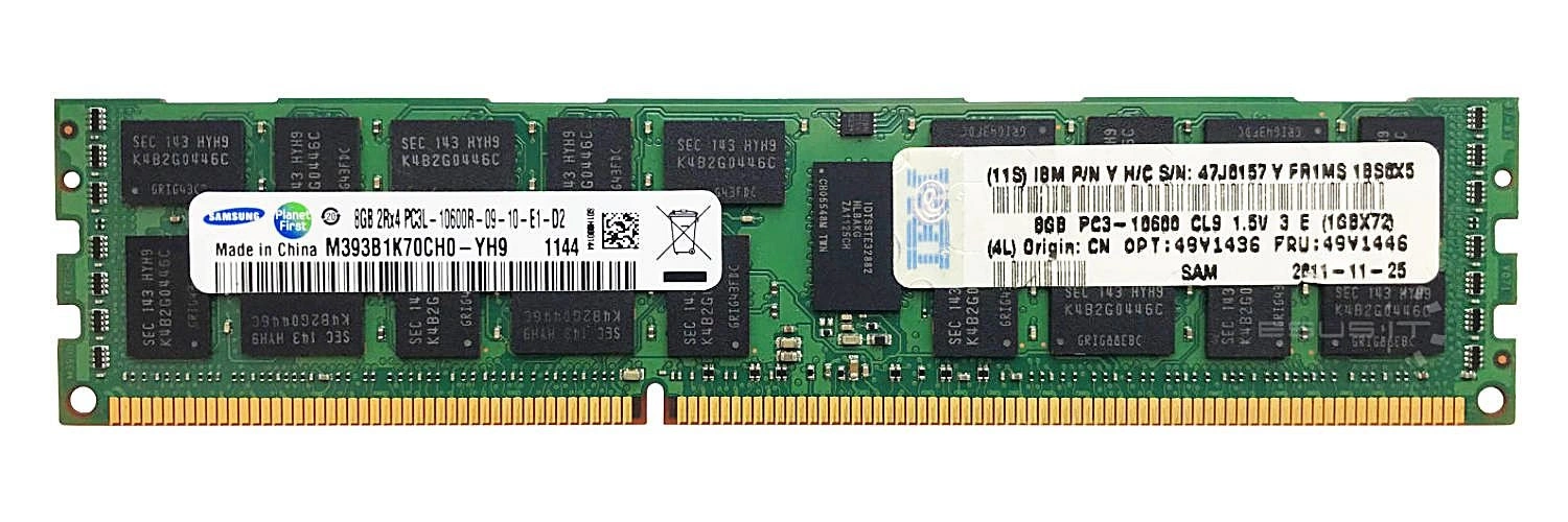 - Set of 8GB memory consisting of 1x 8GB PC3-10600 DDR3 1333MHz 1.5 V ECC REGISTERED | M393B1K70CH0-CH9