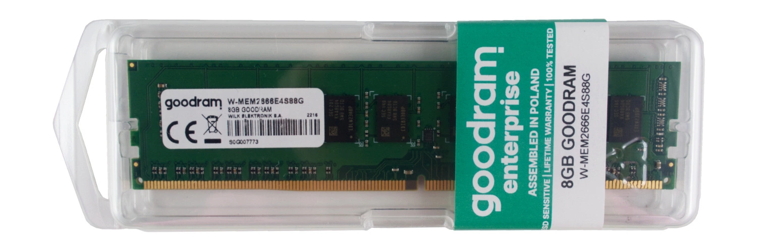 Memory RAM 1x 8GB GoodRAM ECC UNBUFFERED DDR4 1Rx8 2666MHZ PC4-21300 UDIMM | W-MEM2666E4S88G