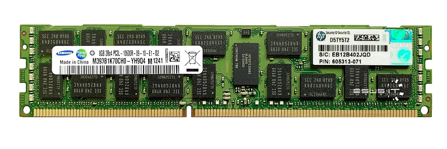 - Set of 8GB memory consisting of 1x 8GB PC3-10600 DDR3 1333MHz 1.35 V / 1.5V ECC REGISTERED | M393B1K70CH0-YH9
