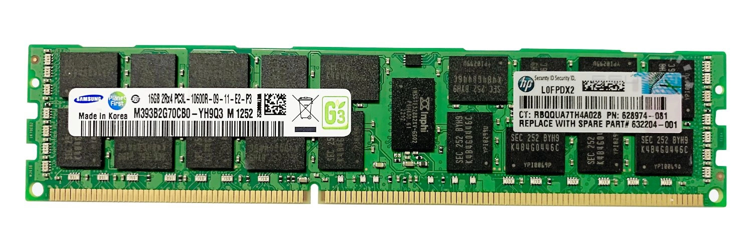 - Set of 16GB memory consisting of 1x 16GB 2Rx4 PC3-10600 DDR3 1333MHz 1.35 V / 1.5V ECC REGISTERED | M393B2G70CB0-YH9