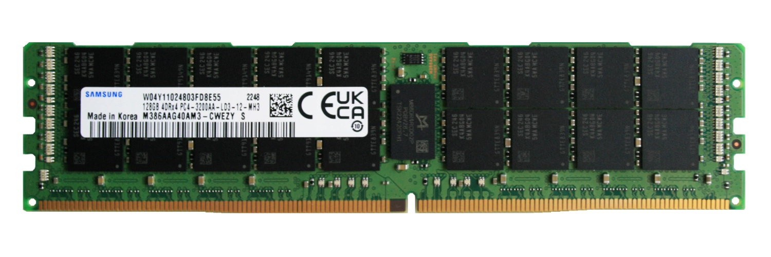 - Set of 128GB Samsung consisting of 1x 128GB 4Rx4 PC4-25600 DDR4 3200MHz LOAD REDUCED | M386AAG40AM3-CWE