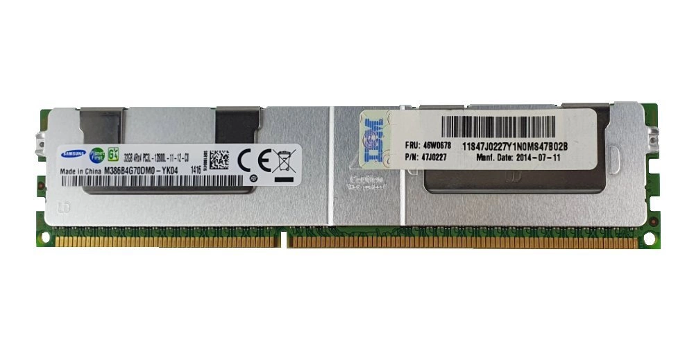 • Set of 32GB memory consisting of 1x 32GB 4Rx4 PC3-12800 DDR3 1600MHz 1.35 V / 1.5V ECC LOAD REDUCED DIMM | M386B4G70DM0-YK0