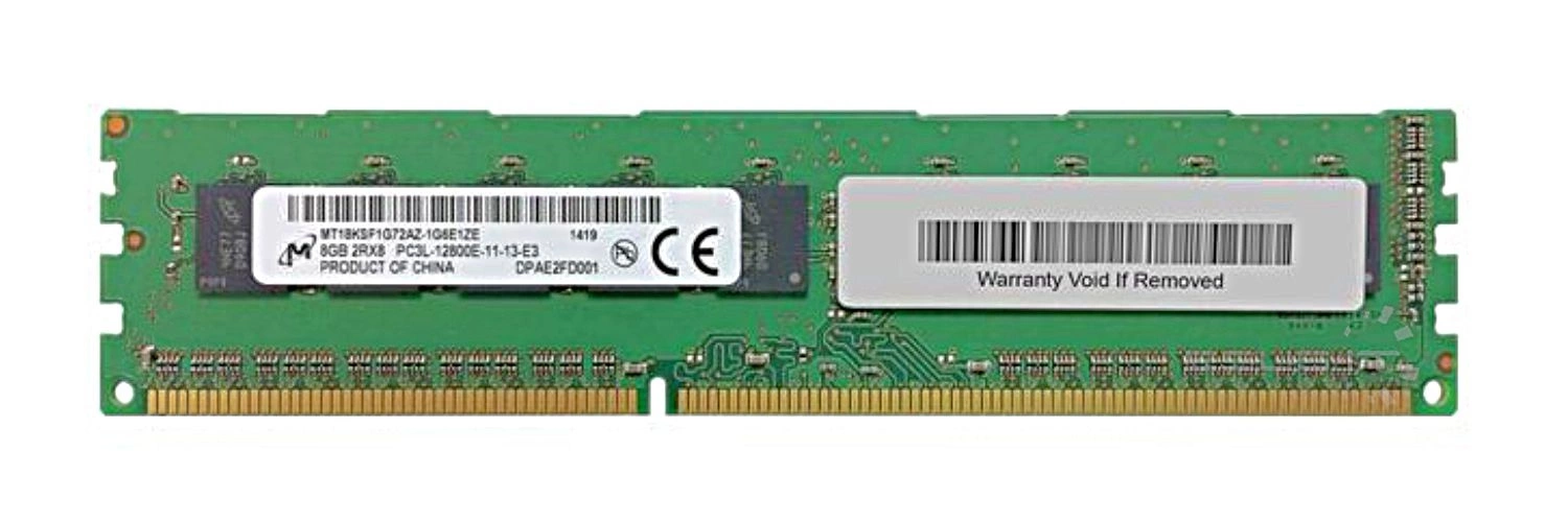 - Set of 8GB memory consisting of 1x 8GB PC3-12800 DDR3 1600MHz 1.35 V / 1.5V ECC UNBUFFERED | MT18KSF1G72AZ-1G6