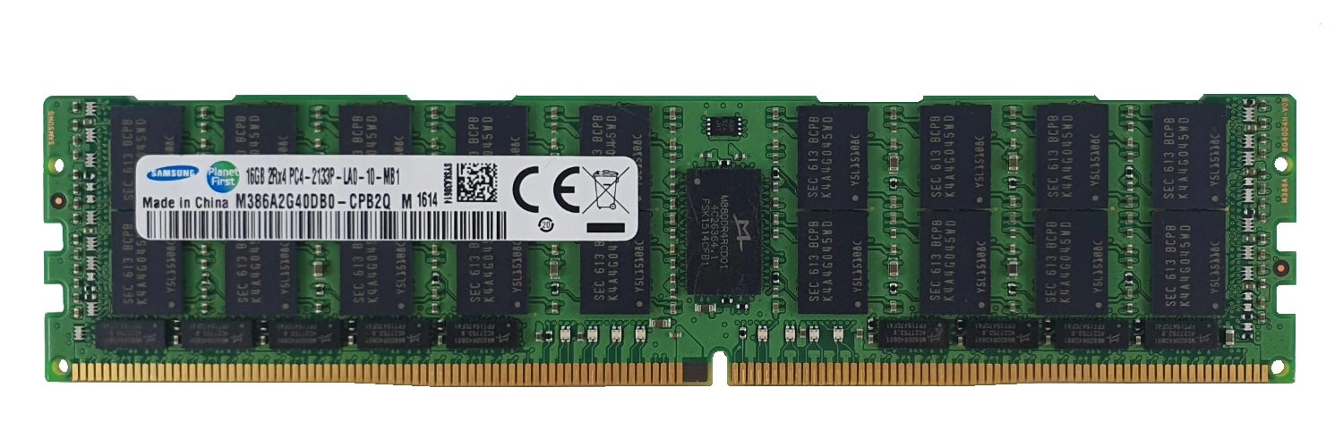 - Set of 16GB Samsung consisting of 1x 16GB 2Rx4 PC4-17000 DDR4 2133MHz ECC LOAD REDUCED | M386A2G40DB0-CPB