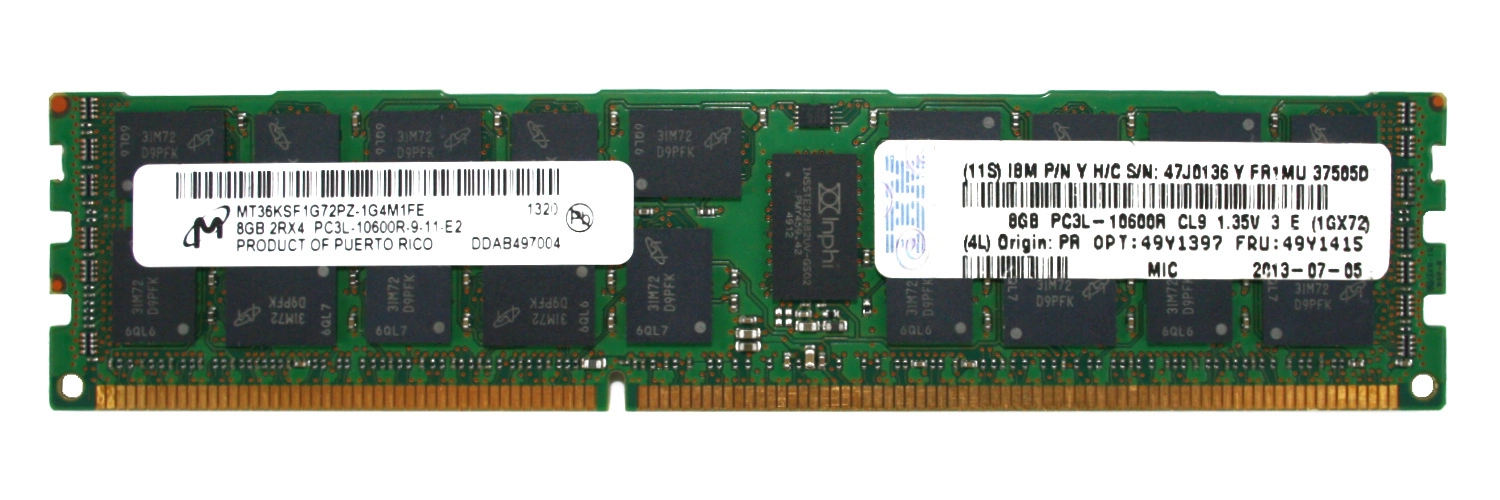 - Set of 8GB memory consisting of 1x 8GB PC3-10600 DDR3 1333MHz 1.35 V / 1.5V ECC REGISTERED | MT36KSF1G72PZ-1G4