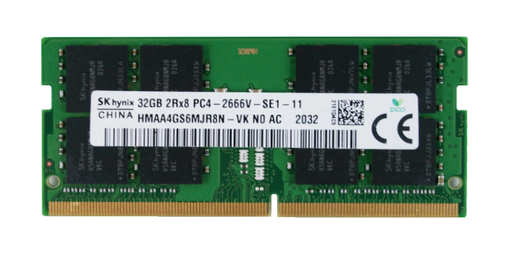 - Set of 32 GB memory consisting of 1x 32GB SO-DIMM DDR4 2666MHZ PC4-21300 | HMAA4GS6MJR8N-VK