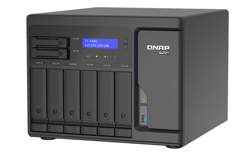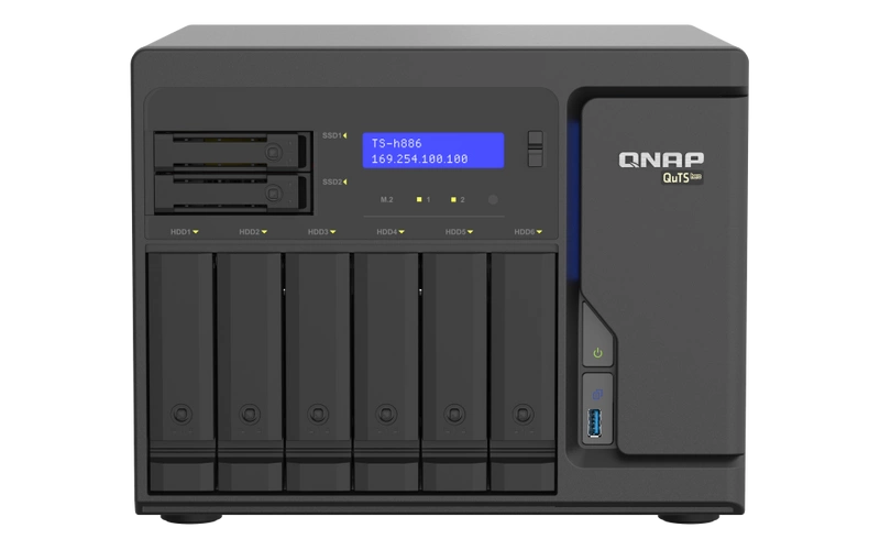 • NAS server QNAP TS-h886 | CPU: Intel Xeon D-1622 RAM: 8GB | 4x 2.5GB RJ-45, 3x USB 3.2 Gen 2 | Warranty 3 year