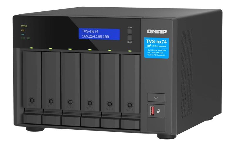• NAS server QNAP TVS-h674 | CPU: Intel Core i5-12400 RAM: 32GB | 2x 2.5GB RJ-45, 3x USB 3.2 Gen 2 | Warranty 3 year