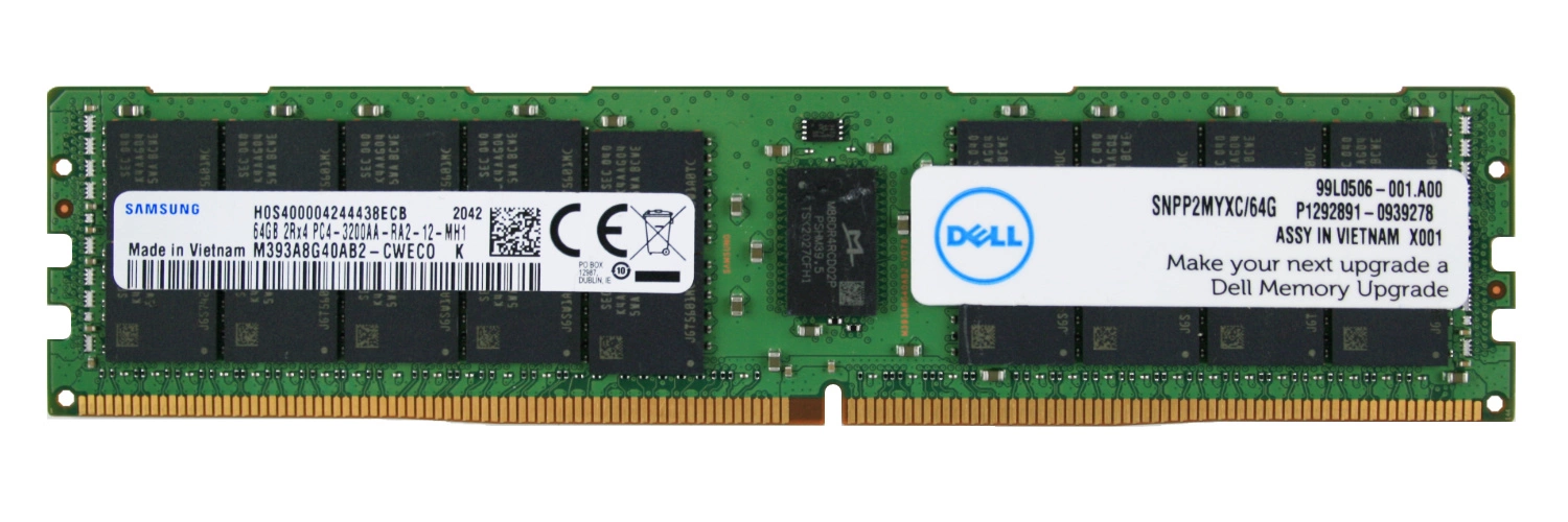 - Set of 64GB memory consisting of 1x 64GB 2Rx4 PC4-25600 DDR4 3200MHz 1.2 V ECC REGISTERED | M393A8G40AB2-CWE
